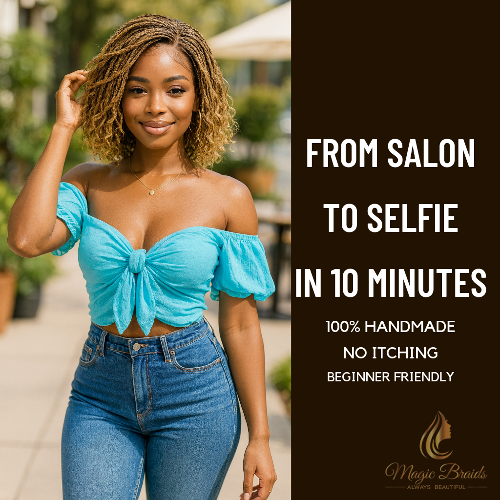Embrace effortless boho charm with The Boho Sunset.This isn’t just a wig—it’s your ticket to carefree style that blends the precision of micro braids with soft, boho curls. The summer blonde shade radiates warm, sunny vibes while the playful bob length frames your face beautifully. Whether you’re running errands, meeting friends, or enjoying casual outings, this masterpiece gives you instant boho elegance without the salon commitment.