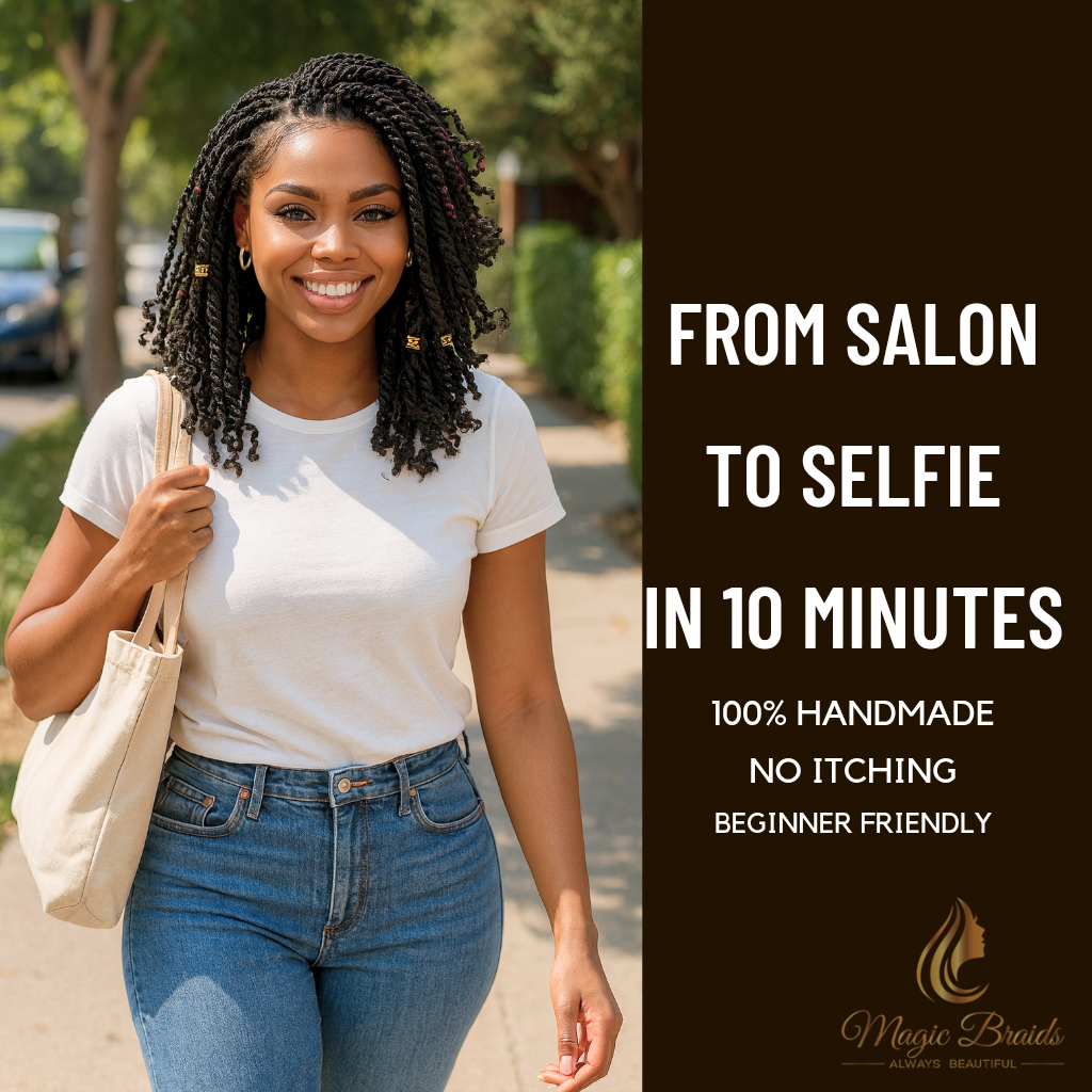 Some styles whisper romance in every twist, telling stories of texture, volume, and beautiful authenticity. The Effortless Romance is crafted for the woman who cherishes natural beauty but values her time equally. Imagine kinky twists that capture the perfect balance of definition and freedom, with jet black depth that shines with rich dimension in any light. This isn’t about transformation—it’s about enhancement, offering a fashion-forward expression that feels as authentic as it looks. Slip into this romantic texture in just 10 minutes and experience hair that understands the beauty of effortlessness, delivering volume and character without demanding hours of your precious time.