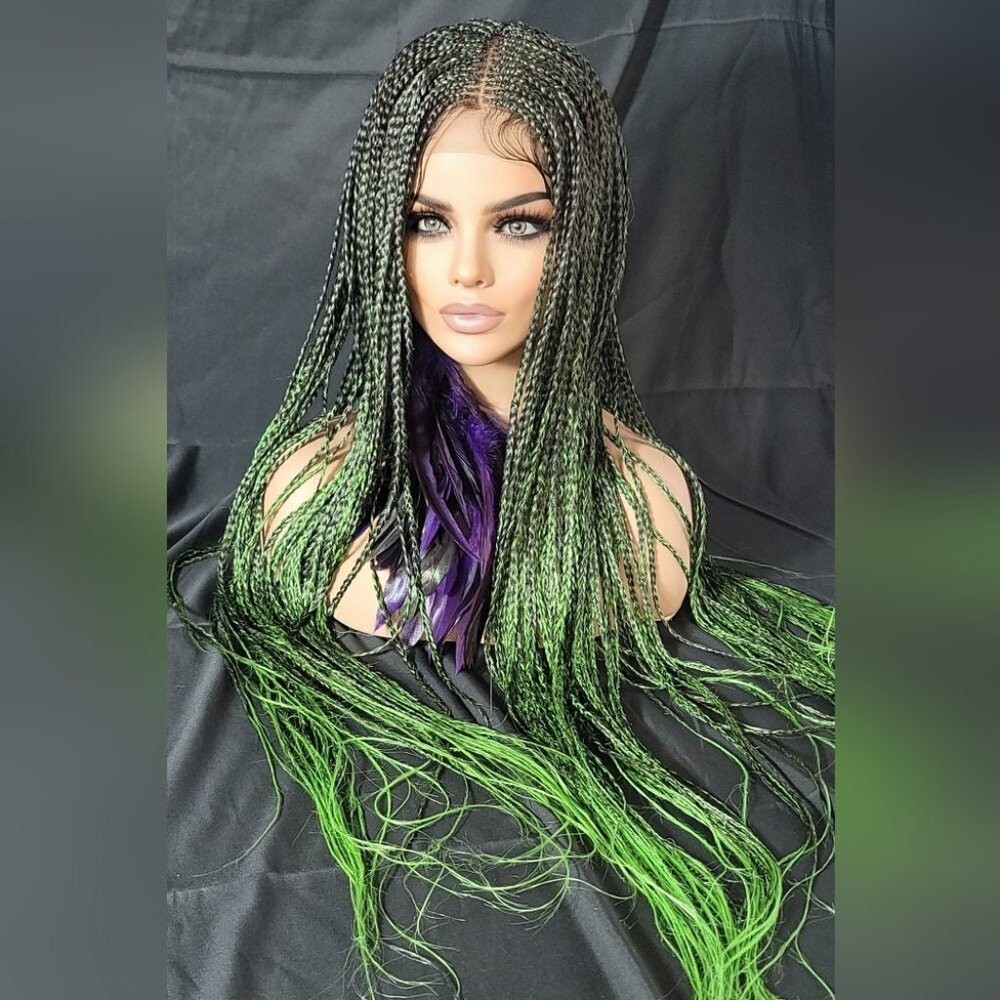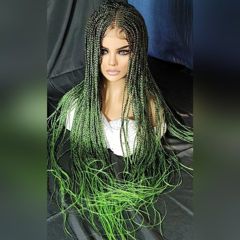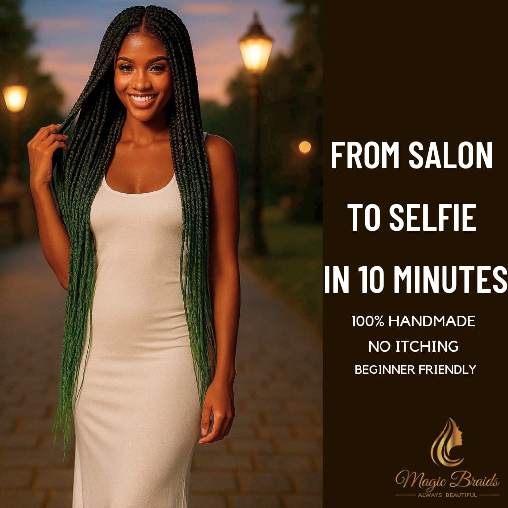 Some events transport you,and some hairstyles complete the journey. The Tropical Escape is crafted for celebrations where ambiance matters and your appearance should enhance the theme. Imagine green ombre that mirrors ocean depths meeting sunlit shoresโa color journey that tells a story of paradise found. At 30 inches of flowing elegance, these hip-length braids move with the gentle grace of palm fronds in island breezes, creating a silhouette that belongs on white sand beaches and under string-light canopies. This is hair for destination weddings where the setting inspires beauty, for tropical galas where theme demands commitment, for any celebration where arriving in paradise isnโt just a locationโitโs a state of being, beautifully expressed through every braid.