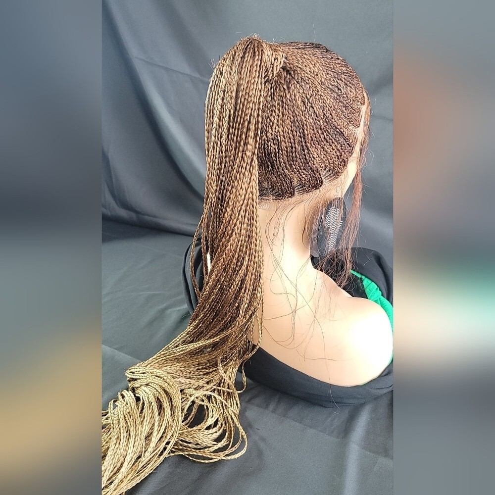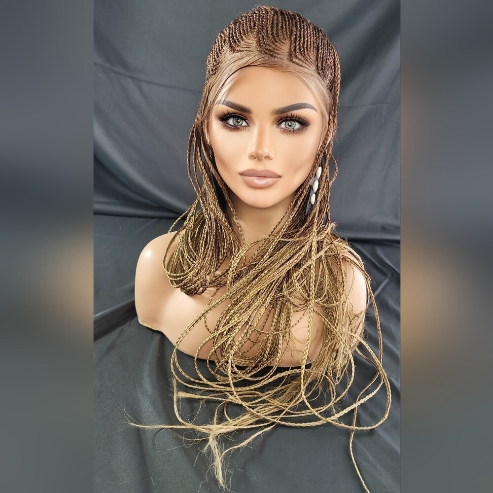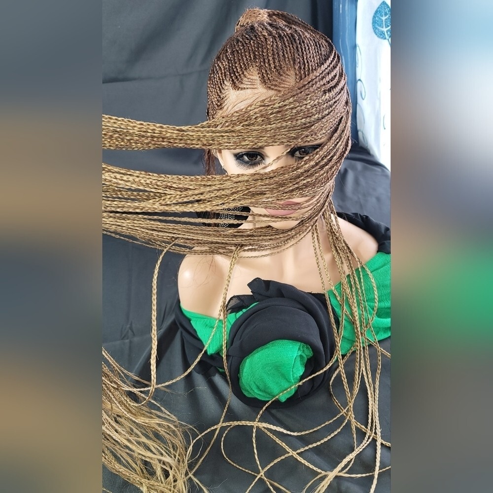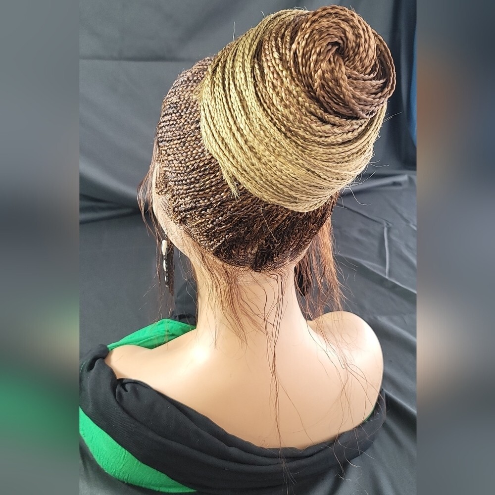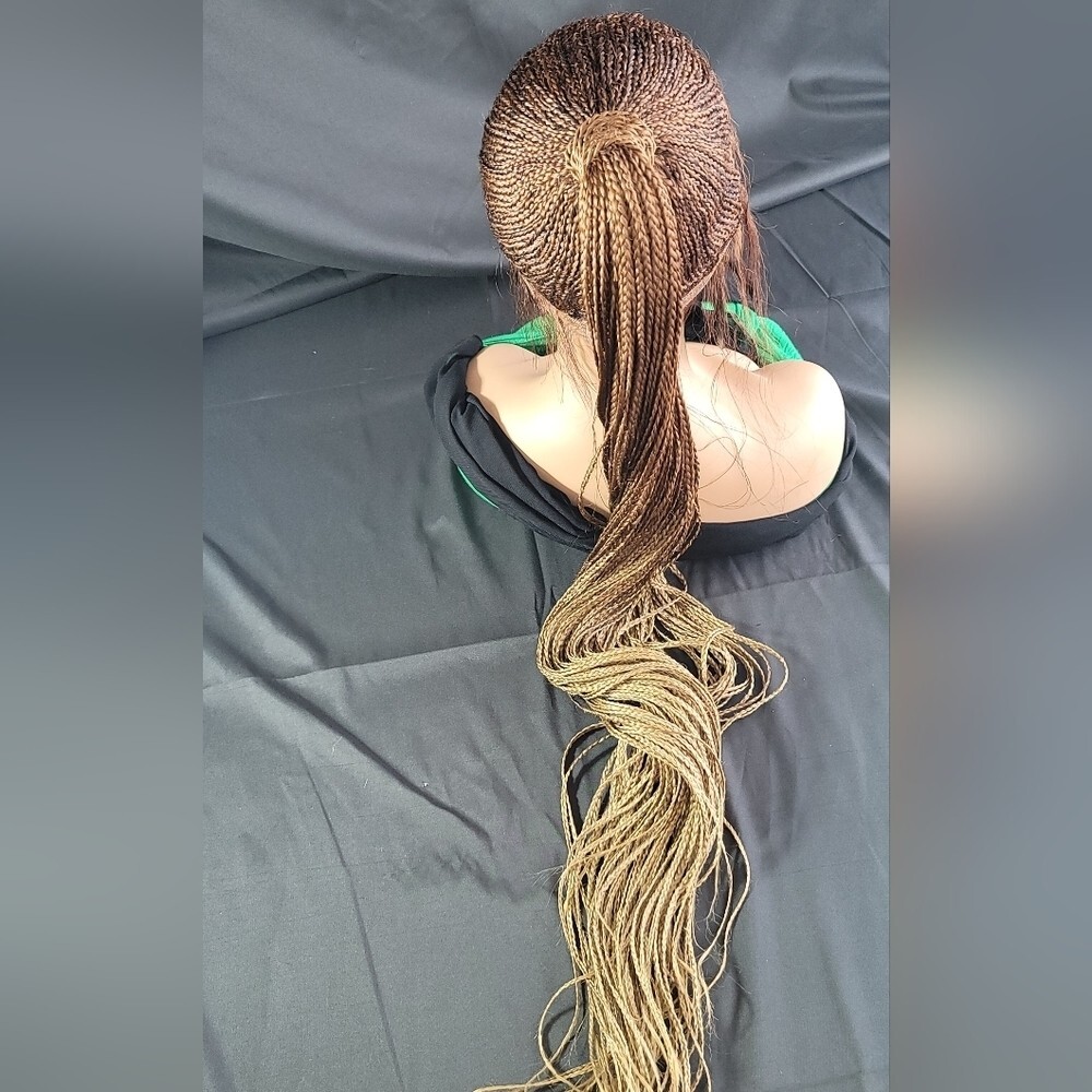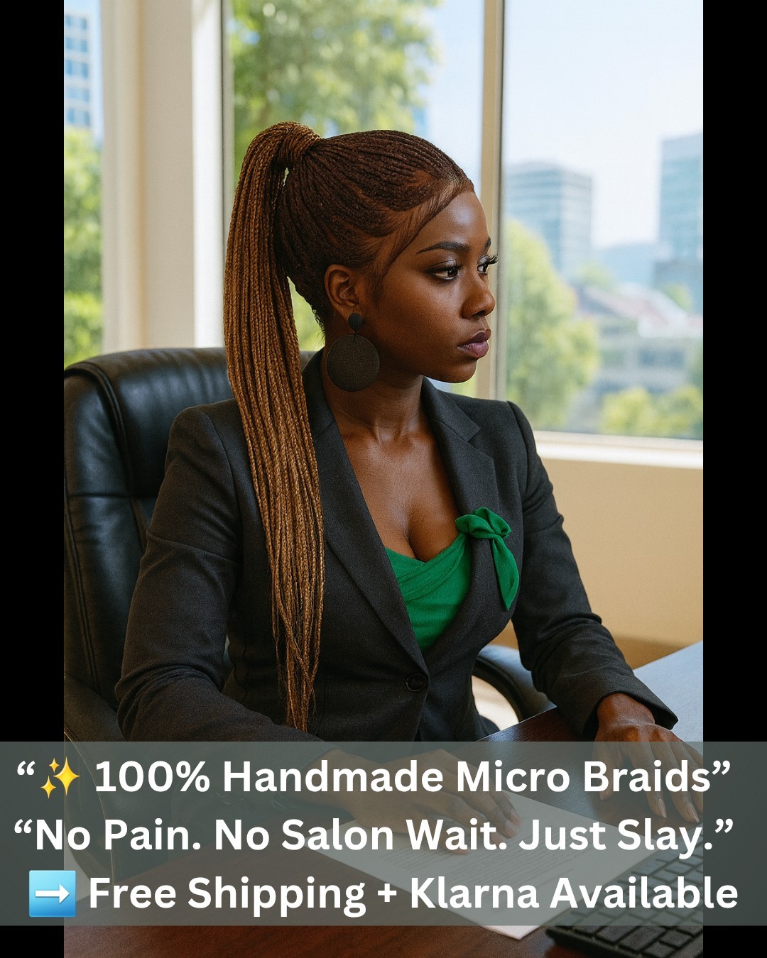 True elegance isn’t complicated—it’s refined simplicity that adapts to every moment.The Regal Charm understands that sophistication lives in versatility. Imagine micro feed-in cornrows gathering into a clean, decisive ponytail that cascades into waist-length micro braid extensions, moving with graceful intention. Inspired by timeless updo styles, each hand-braided strand cascades in a beautiful ombre blend from rich dark brown to soft golden tips wraps you in warmth and sophistication, while the lightweight construction ensures you feel as effortless as you look. This is hair that understands your life: sleek and commanding for morning meetings, then effortlessly transformed into an elegant messy bun for spontaneous evenings with friends or colleagues.