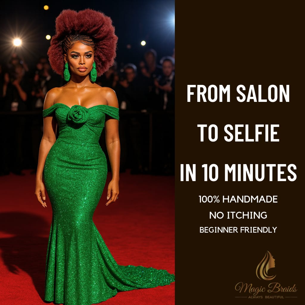 Some hairstyles are worn,but this one is experienced. The Unforgettable Moment is crafted for celebrations where being remembered is as important as being present. From its captivating red hue that photographs like a masterpiece to the intricate cornrow patterns that frame your face with artistic precision, this piece doesn’t just complete your look—it becomes the conversation. The luxurious afro volume creates a beautiful silhouette that ensures you remain the visual highlight long after the event ends, turning glances into lasting impressions and moments into memories.
